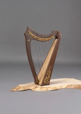 Walnut, semi-matte finish, features arabesque pattern, 25 strings