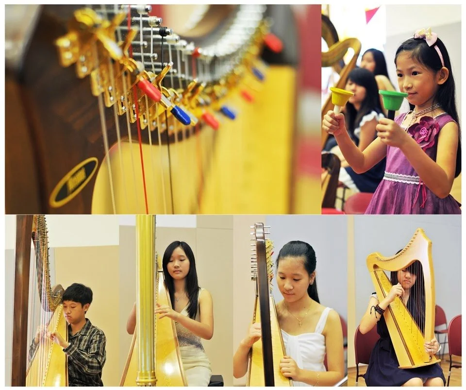 From a young age, they also performed at various small events—including their own birthday parties and a local talent show at our neighborhood shopping center. During their primary school years, we formed a children’s harp group with their cousins and a friend. The ensemble, which they named Harps Unlimited, rehearsed every weekend in my home studio, playing specially arranged pieces adapted for a young harp ensemble. They performed regularly at malls, churches, and were even invited by a Penang producer for a studio recording.